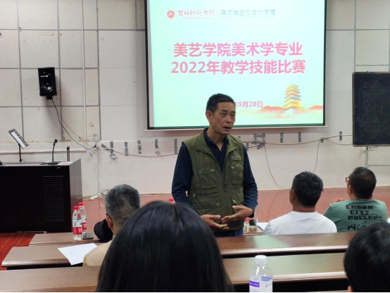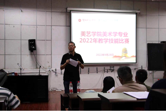 此次说课比赛由学院党总支书记王建华主持,2019级美术学专业全体同学、2022级美术学专业部分同学现场观摩了比赛。