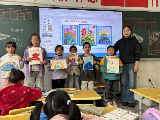 支教团队紧扣各驻点学校学段差异与学生艺术基础,设计“基础+特色 ”双轨课程体系,覆盖绘画、手工、传统美术、设计等多元领域,让艺术教育精准对接学生成长需求。