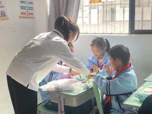 各驻点学校课后服务聚焦学生兴趣培养,打造特色艺术社团。 近城小学李先运运营扭扭棒社团与国画社团,前者指导学生制作“小丑鱼发箍 ”“兔耳朵发箍 ”,锻炼手部精细动作; 后者教授 写意荷花画法与山水画基础技法, 传承中华优秀传统文化。插甸学校梁录旭在课后服务中开办艺术画展,展示半个学期以来学生优秀绘画作品;刘成耀组织红歌大合唱比赛,兼顾艺术教育与德育渗透。香水中学魏仁燈开展“盛世华诞 ”主题美术课后服务, 引导学生结合节日主题创作;农玉连通过课后服务指导学生参与校园墙绘,美化校园环境。